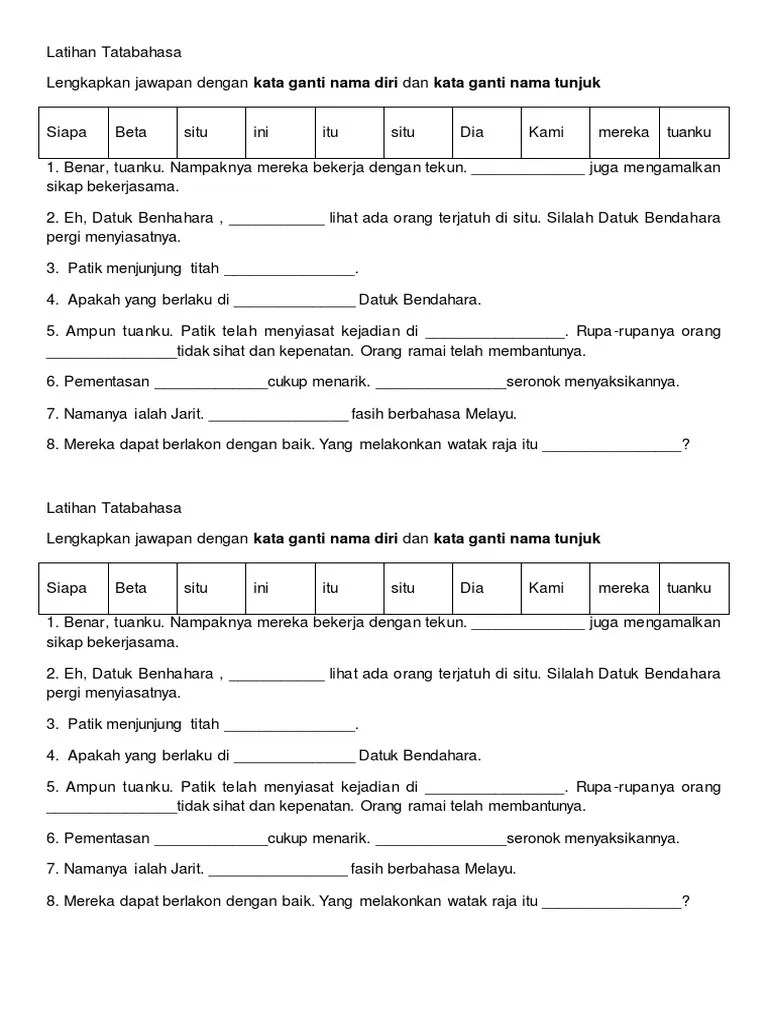 Gunalah duit ini untuk membeli buku latihan kamu. Latihan kata ganti nama tunjuk 1) nah, . Kata ganti nama kata ganti nama ialah kata yang dapat menggantikan sesuatu kata .